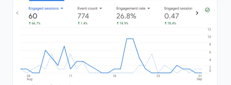 The implemented SEO strategy successfully achieved authority dominance for key informational queries, resulting in high organic traffic volume and consistent engagement. The site achieved top-ranking, answer-box visibility for queries such as "How Much is Pet Cremation in Ireland?". This authority drove substantial traffic, reflected by the 546 total Users and 4.9K Event Count. Furthermore, the site achieved a solid 2.8% Average CTR on a pool of over 500 impressions, showing that its search listings were highly compelling.