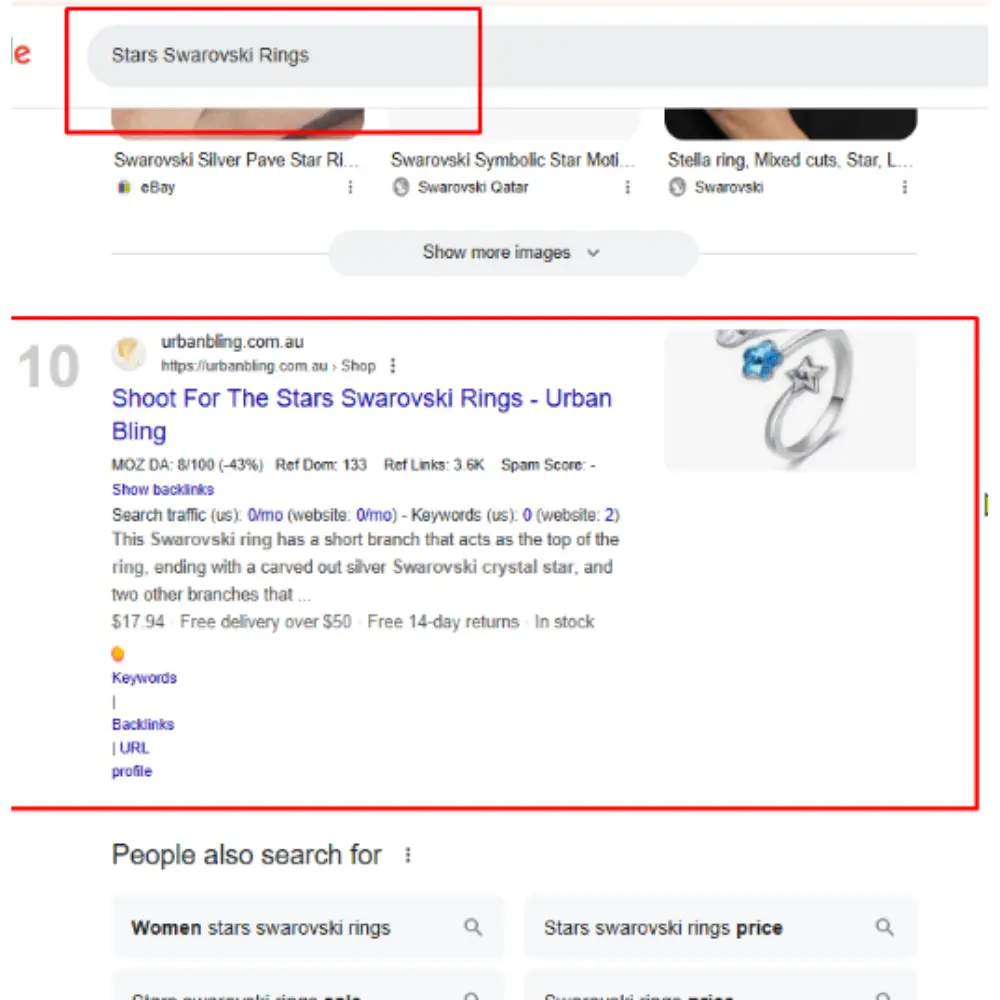 Optimized existing product and collection pages with strategic keywords, focusing on high-intent terms like “bling jewellery,” “rhodium plated swarovski earrings,” and “swarovski australia rings.”